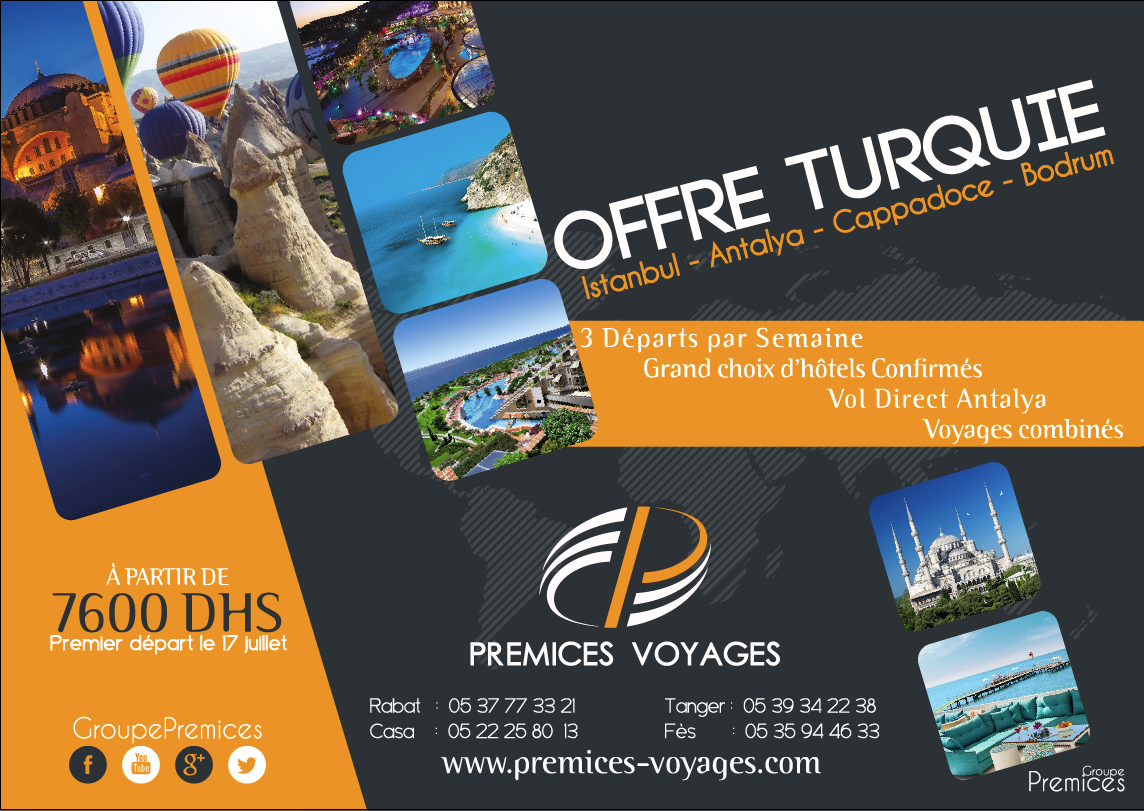 http://premices-voyages.com/ Copyright © 2014 PREMICES GROUP, All rights reserved. Our mailing address is: 21, Place Abou Bakr Essediq Agdal - Rabat - Maroc --