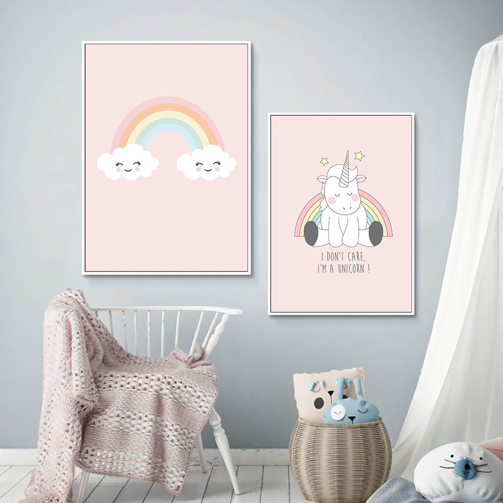 2021 Pink Rainbow Canvas Painting Kids Poster Nordic Wall Art Picture Unicorn Poster Nursery Posters And Prints Baby Room Decoration From Haloqueen, $3.65 | DHgate.Com