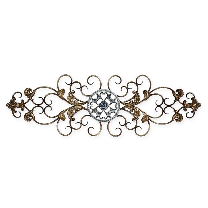 Amazon Com Stratton Home Decor Shd0234 Traditional Scroll Wall Decor 36 00 W X 0 50 D X 11 50 H Champagne And Distressed Blue Home Kitchen